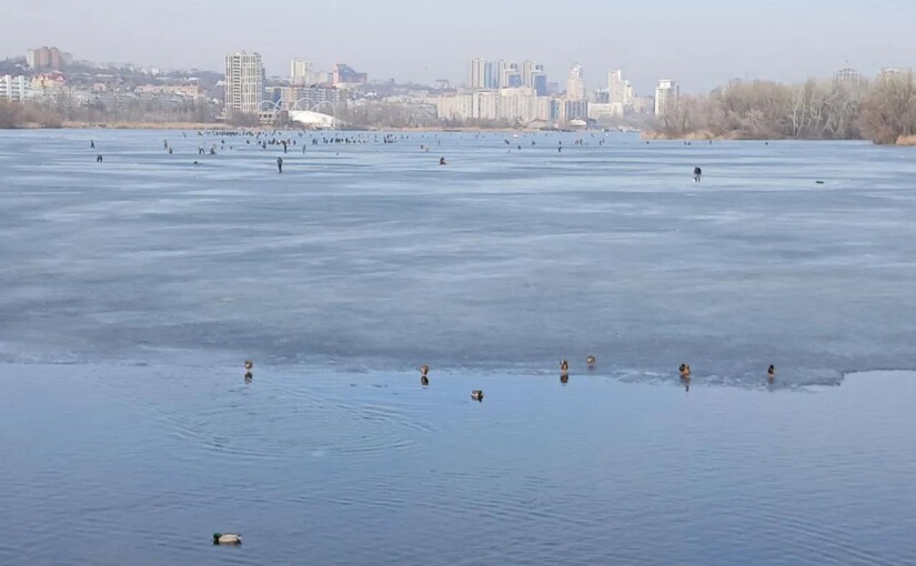 Помогите журналистам Vgorode.ua делать свою работу. Поддержите финансово >>> ❤По словам очевидцев, лед уже активно ослабевает. У берега появилась открытая вода, а на поверхности льда видны темные пятна и трещины. Это явные признаки того, что покров теряет крепость.
