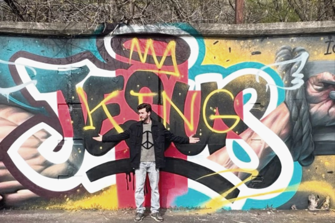 Художник Zdesroy спеціалізується на великоформатних вуличних роботах. Цього разу він обрав місце з очевидною символікою: стадіон — простір масового зібрання людей, а тема розп'яття органічно вписується в контекст Великого тижня.